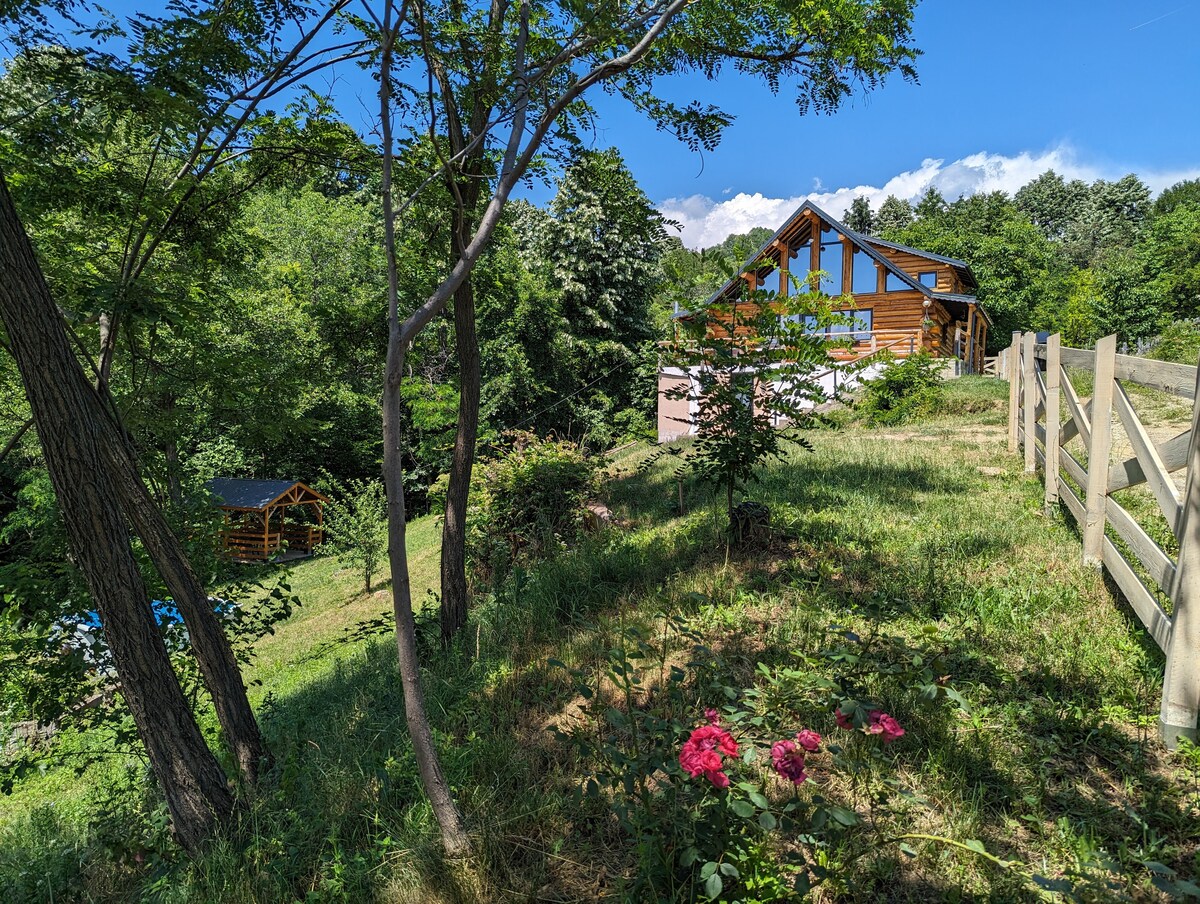 या अनोख्या आणि शांत निवासस्थानामध्ये आराम करा. कारपॅथियन्सच्या पायथ्याशी असलेल्या एका लहान खेड्यात लाकडी उंचीवर वसलेले, शॅले आसपासच्या टेकड्या आणि जंगलाचे अप्रतिम दृश्य देते. नैसर्गिक दृश्ये, तारांकित आकाश किंवा सरपटणारे प्राणी, हरिण किंवा पक्षी यासारख्या स्थानिक वन्यजीवांचे निरीक्षण करण्यासाठी तुम्ही जागेच्या शांततेचा आनंद घ्याल. पूर्णपणे सुसज्ज शॅले सर्व आवश्यक सुविधांसह एक आरामदायक आणि प्रशस्त लिव्हिंग क्षेत्र ऑफर करते