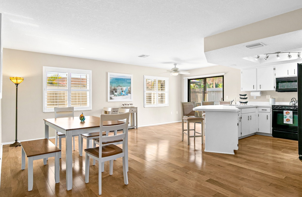 पामहाऊसमध्ये तुमचे स्वागत आहे, कुटुंबे आणि ग्रुप्ससाठी योग्य असलेले एक उज्ज्वल आणि आधुनिक 4-बेडरूम फ्लोरिडा व्हॅकेशन होम. या घरात 2 किंग बेड्स, 1 क्वीन आणि 2 ट्विन्स, कॉफी बारसह पूर्णपणे स्टॉक केलेले किचन आणि इलेक्ट्रॉनिक फायरप्लेससह आरामदायक लिव्हिंग एरिया आहे. तुमच्या खाजगी गरम पूल (87°F पर्यंत), आऊटडोअर टीव्ही, BBQ ग्रिल, पूलसाईड सीटिंग आणि बीच सप्लायजचा आनंद घ्या. आराम करा, निश्चिंत व्हा आणि सहज किनारपट्टीच्या जीवनाचा आनंद घ्या.