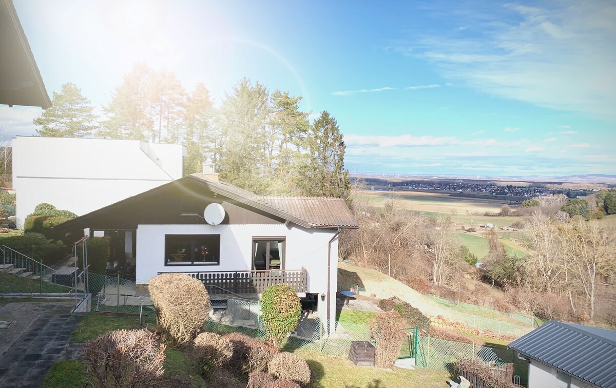 60 च्या दशकातील आमचे उबदार कॉटेज पूर्णपणे नूतनीकरण केले गेले आहे आणि आत प्रेमळपणे सुसज्ज आहे. हे व्हिएन्ना फॉरेस्टजवळील एका लहान सेटलमेंटमध्ये आलिशानपणे वसलेले आहे आणि बस लाईन 52A द्वारे सहजपणे ॲक्सेसिबल आहे, जे विएन ह्युटेलडॉर्फ (U4, स्नेलबान, üBB) पासून दर तिमाही तासाला चालते. या घरात 3 बेडरूम्स आहेत ज्यात मोठे डबल बेड्स, एक लिव्हिंग रूम, डायनिंग एरिया असलेले किचन आणि मोठ्या शॉवरसह वरचे नूतनीकरण केलेले बाथरूम आहे.