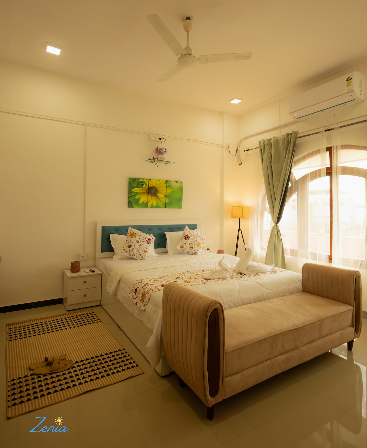 A simple and comfortable stay in Mumbai’s western suburbs, ideal for families or groups. The space has 3 clean, minimal rooms with attached bathrooms—2 rooms with double beds and 1 with a double plus bunk bed. There’s a small living area, a basic kitchenette, and access to shared spaces downstairs where breakfast is served and guests often connect. It’s may not be luxury, but it’s got everything you need to feel relaxed, rested, and right at home during your time in the city of dreams