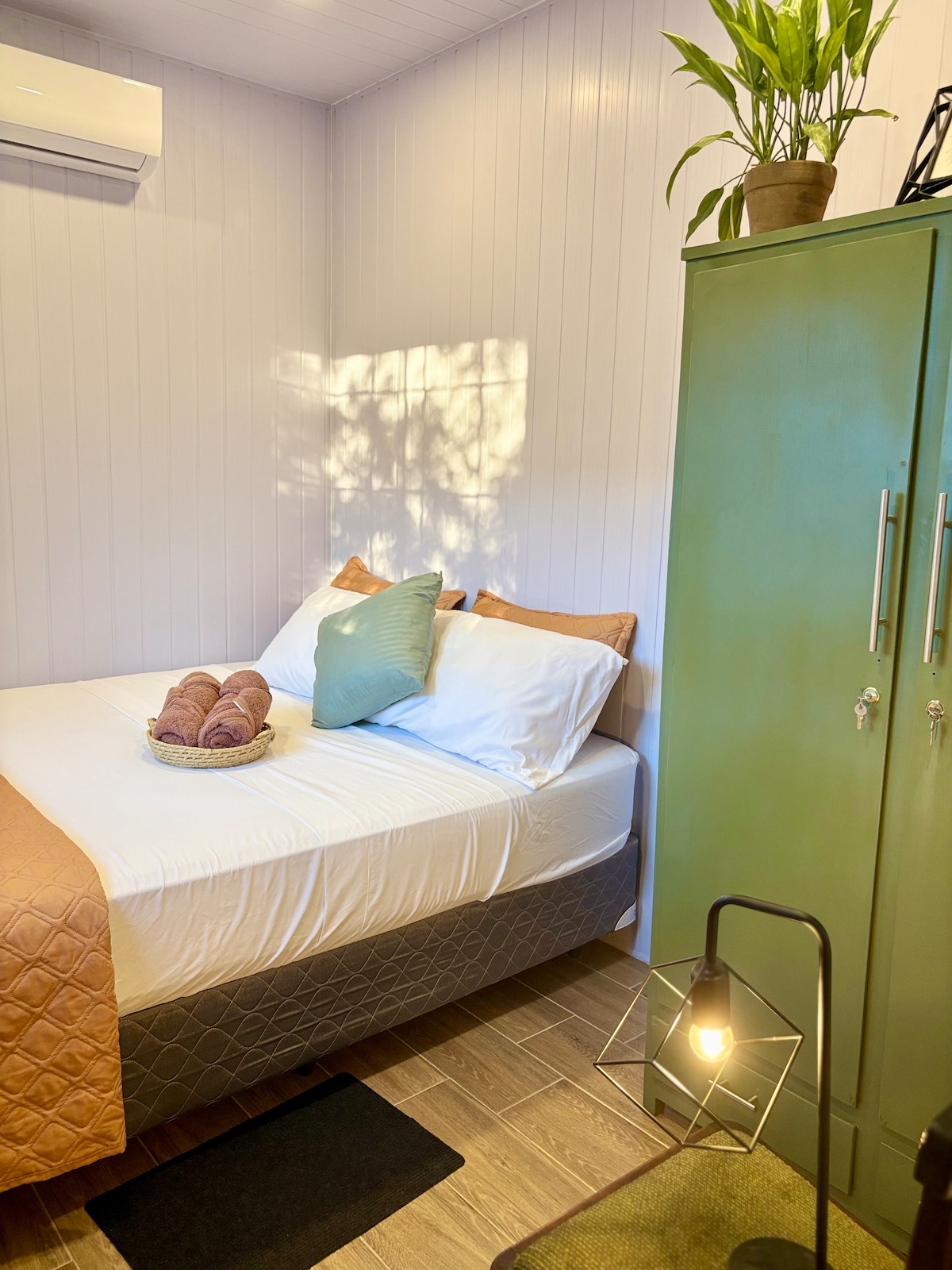 Nomade Glamping Clair de Lune या जागेवर 2 हेक्टरच्या प्रॉपर्टीमध्ये 200m2 प्रायव्हसीचा निसर्गरम्य बबल आहे. रूम ही झाडांवरील दोन मजली ग्लॅम्पिंग केबिन आहे. रूममध्ये एक किंग्जइझ बेड, लांब खिडक्या आणि एक फॅन आहे. या जागेमध्ये एक लहान खाजगी पूल, एक खाजगी बाथरूम, एक किचन आणि एक पारंपारिक लाउंज आणि कॅम्पफायरची जागा देखील आहे. त्यांना इतर ग्लॅम्पिंगसह शेअर केलेल्या प्रॉपर्टीवरील मोठ्या पूलचा ॲक्सेस आहे.