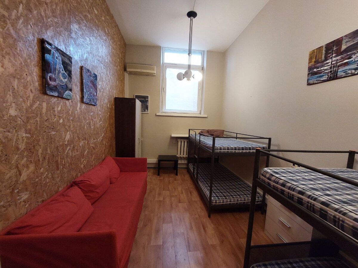 ही स्टाईलिश जागा पाहण्यासारख्या डेस्टिनेशन्सच्या जवळ आहे. आम्ही एक लहान हॉस्टेल आहोत, जे आम्हाला वाटते की आमचे घरगुती वातावरण राखण्यासाठी परिपूर्ण आहे. विल्नियसच्या अगदी मध्यभागी असलेल्या, तुम्ही प्रत्येक गोष्टीसाठी 5 मिनिटांच्या अंतरावर आहात. आमच्याकडे खाजगी आणि शेअर केलेल्या रूम्स आहेत. 7 - बेड मिश्रित डोमिटरी रूममधील बेडसाठी भाडे आहे. भाड्यात वायफाय, टॉवेल्स आणि बेडिंगचा समावेश आहे.