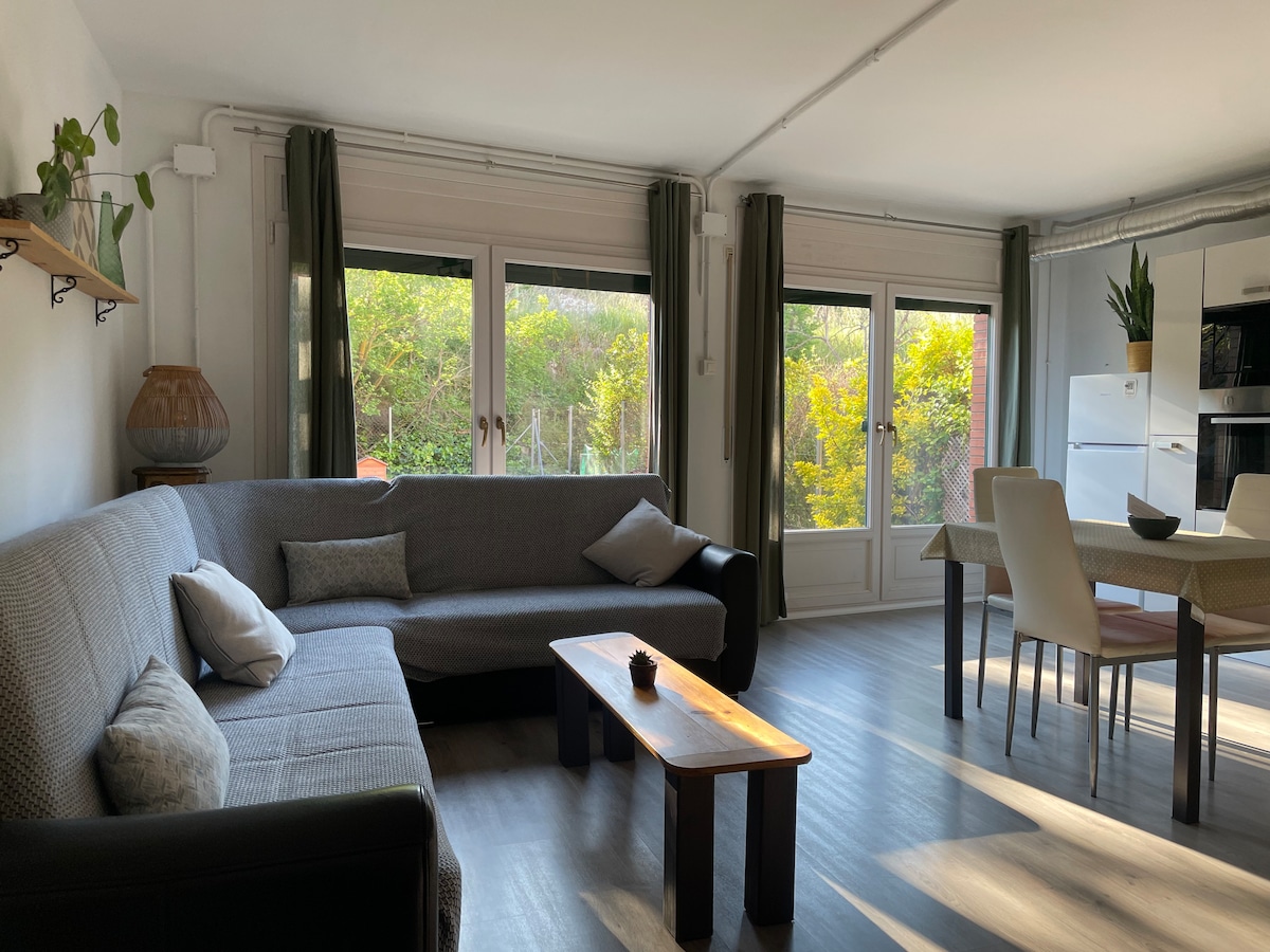 माऊंटन व्ह्यूज असलेले अपार्टमेंट. खूप उबदार आणि उज्ज्वल. डायनिंग रूममध्ये डबल बेड आणि सोफा बेड असलेली 1 बेडरूम. 4 लोकांसाठी कुटुंबे आणि मित्रांच्या ग्रुप्ससाठी आदर्श. लिनन समाविष्ट आहे. तुमच्याकडे वायफाय असेल. भांडी, फ्रिज, वॉशिंग मशीन आणि ओव्हनसह पूर्ण किचन. टॉयलेटमध्ये टॉवेल्स, साबण आणि टॉयलेट पेपर आहेत. टेलिव्हिजनमध्ये थंडीच्या दिवसांसाठी हीटिंग आणि हीटिंगचा समावेश आहे. तुमच्या पाळीव प्राण्याचे स्वागत आहे. अविश्वसनीय दृश्यांसह मोठे टेरेस. क्लाइंबिंग, सहली इत्यादींसाठी योग्य वातावरण.