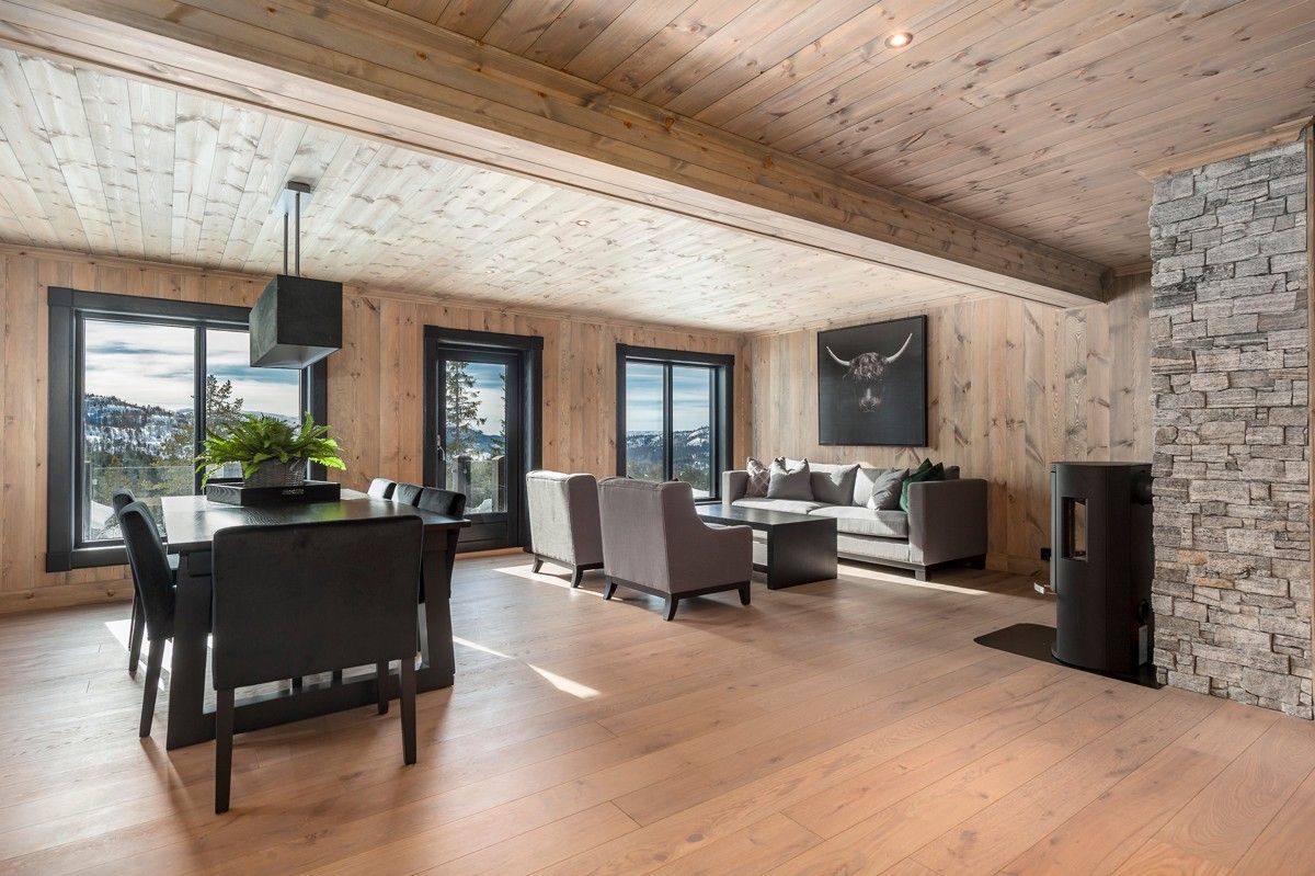Moderne hytte på 150 kvm leies ut - ligger helt for seg selv - ingen naboer! Hytta er bygd i 2022 og har en romslig stue-/kjøkkenløsning med store vinduer. Dette gir en unik følelse av nærhet til naturen og fantastisk utsikt til både skog, fjell og vann. Stor terrasse på 100 kvm rundt nesten hele hytta gir gode solforhold hele døgnet