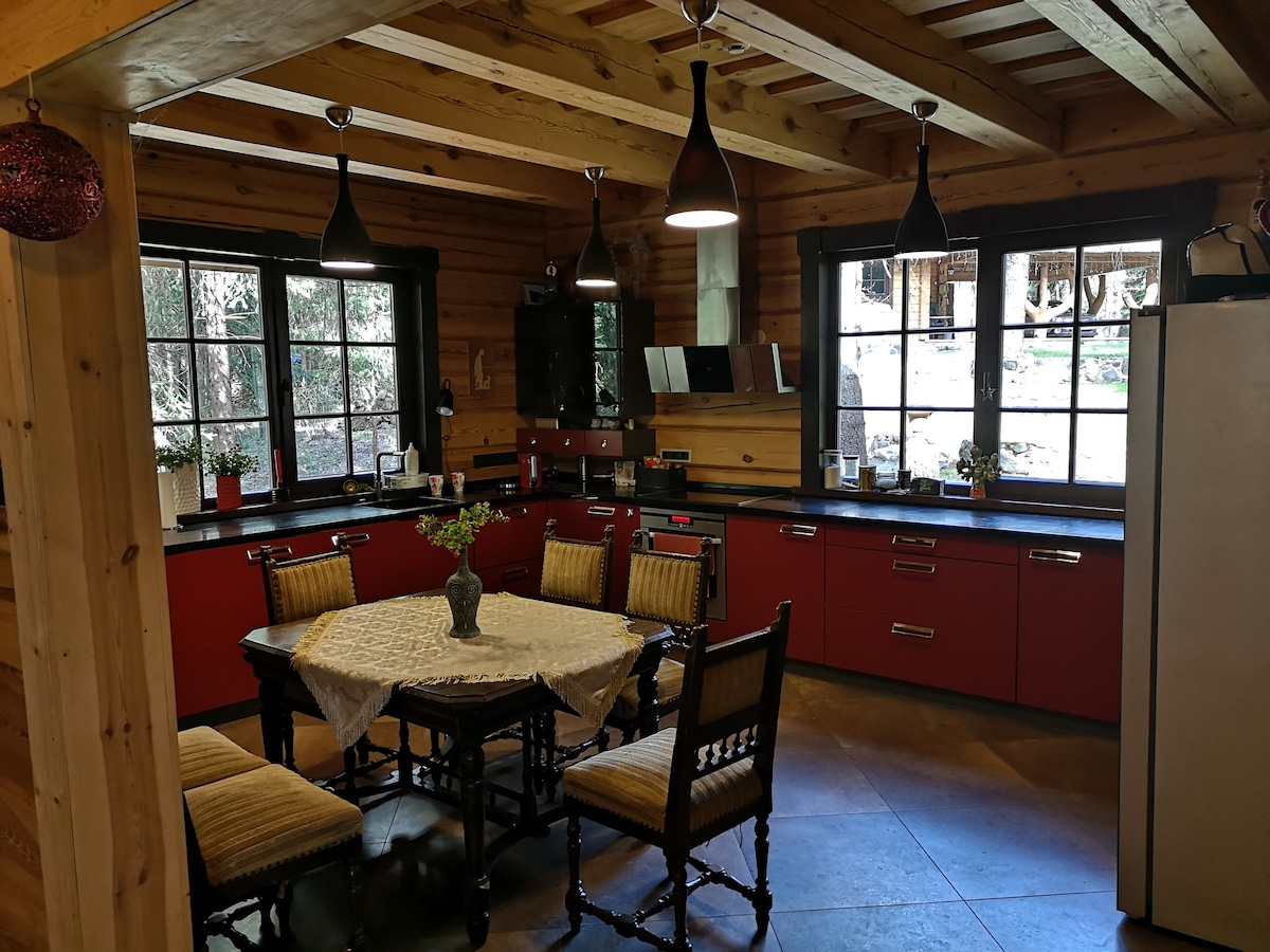 सरताई प्रादेशिक उद्यानातील जंगलाने वेढलेल्या तलावाजवळील एक शांत लाकडी घर. घर पुस्तके, फोटो अल्बम आणि विंटेज म्युझिक रेकॉर्ड्सने भरलेले आहे. बाहेर एक बोट आहे, तलावाकडे पाहणारा मोठा टेरेस, सोफा आणि डायनिंग टेबलसह. किचन आणि एक बेडरूम ग्राउंड फ्लोअरवर आहेत आणि दुसरी बेडरूम वरच्या मजल्यावर आहे. तुम्हाला तुमच्या वास्तव्यादरम्यान योग्य लिथुआनियन सौनाचा आनंद घ्यायचा असल्यास पारंपारिक लाकडी सौना भाड्याने घेतला जाऊ शकतो. कुटुंबासोबत शांततेत वेळ घालवण्यासाठी किंवा दोघांसाठी रोमँटिक वास्तव्यासाठी परफेक्ट.
