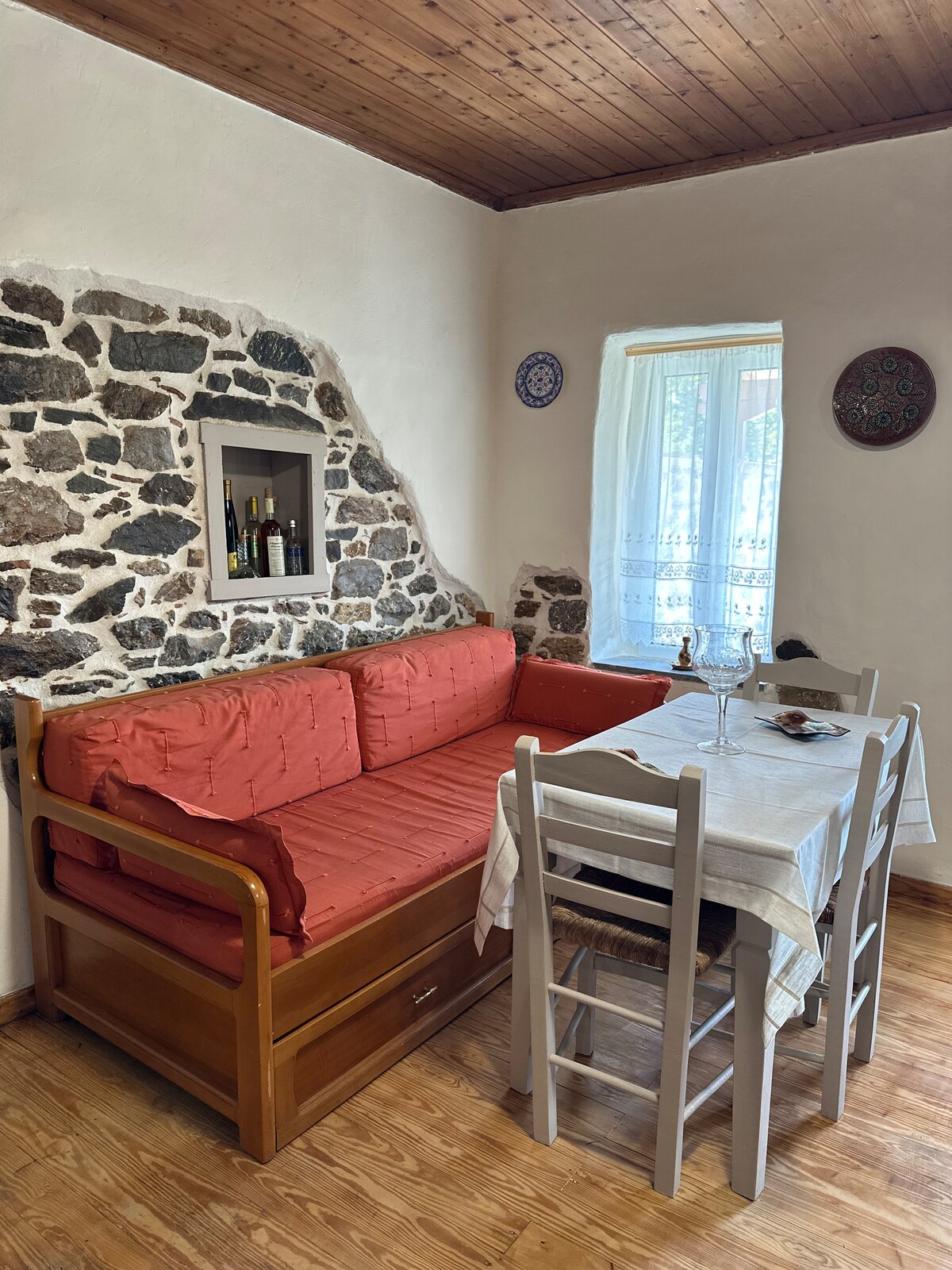 चित्तवेधक दृश्ये आणि परिपूर्ण शांततेसह समुद्रापासून फक्त काही पायऱ्या काळजीपूर्वक बनवलेले समुद्रकिनार्यावरील दगडी अस्सल घर तुमची वाट पाहत आहे. या घरात दोन बेडरूम्स आहेत ज्यात ग्रीको स्ट्रॉमने स्वाक्षरी केलेले आरामदायक बेड्स, गादी, उश्या आणि लिनन्स आहेत. दोन बाथरूम्स फंक्शनल आणि एक ओपन प्लॅन लिव्हिंग रूम किचन पूर्णपणे सुसज्ज आहे. सुलभ आणि सुरक्षित पार्किंगसाठी अनंत निळ्या आणि खाजगी पार्किंगकडे पाहणारे एक सुंदर अंगण.