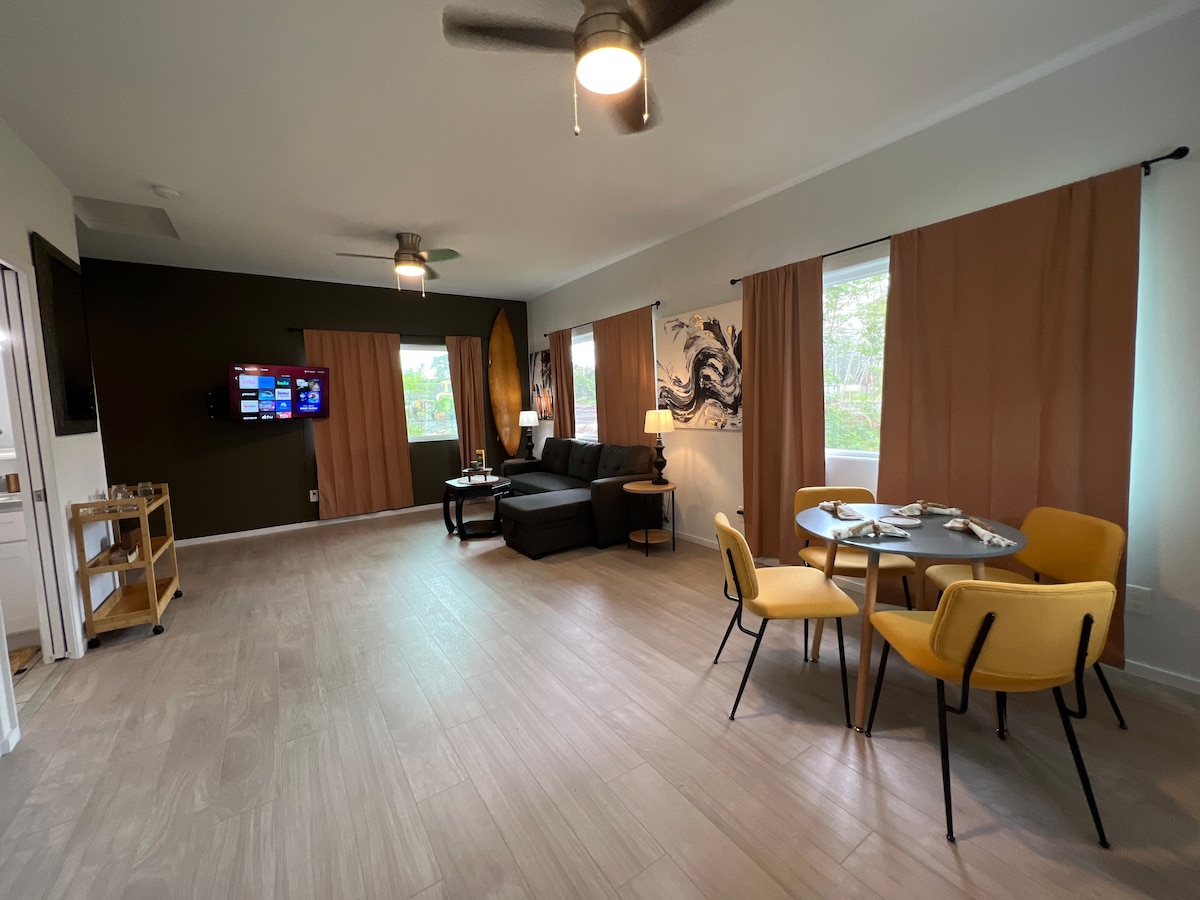 Aloha, आणि Hale Coqui ला पलायन करा! बिग आयलँड, हवाईच्या शांत सौंदर्यामध्ये नव्याने बांधलेली ओहाना. 2023 मध्ये बांधलेले, हे पुरातन, खाजगी ओएसिस जोडपे, मित्र, लहान कुटुंबे, सोलो ॲडव्हेंचर, बिझनेस प्रवासी आणि इतर बऱ्याच गोष्टींसाठी एक सुंदर सेटिंग ऑफर करते. अनप्लग आणि विरंगुळ्याची वेळ आली आहे. तुम्ही खिडकीबाहेर जंगली डुक्कर किंवा मुंगूस देखील पाहू शकता. ज्वालामुखी नॅटल पार्क, केहेना ब्लॅक सँड बीच, पोहोइकी बे आणि हॉट स्प्रिंग्स, पाहोआ टाऊन आणि हिलो विमानतळापासून 25 मिनिटांच्या अंतरावर बंद करा.