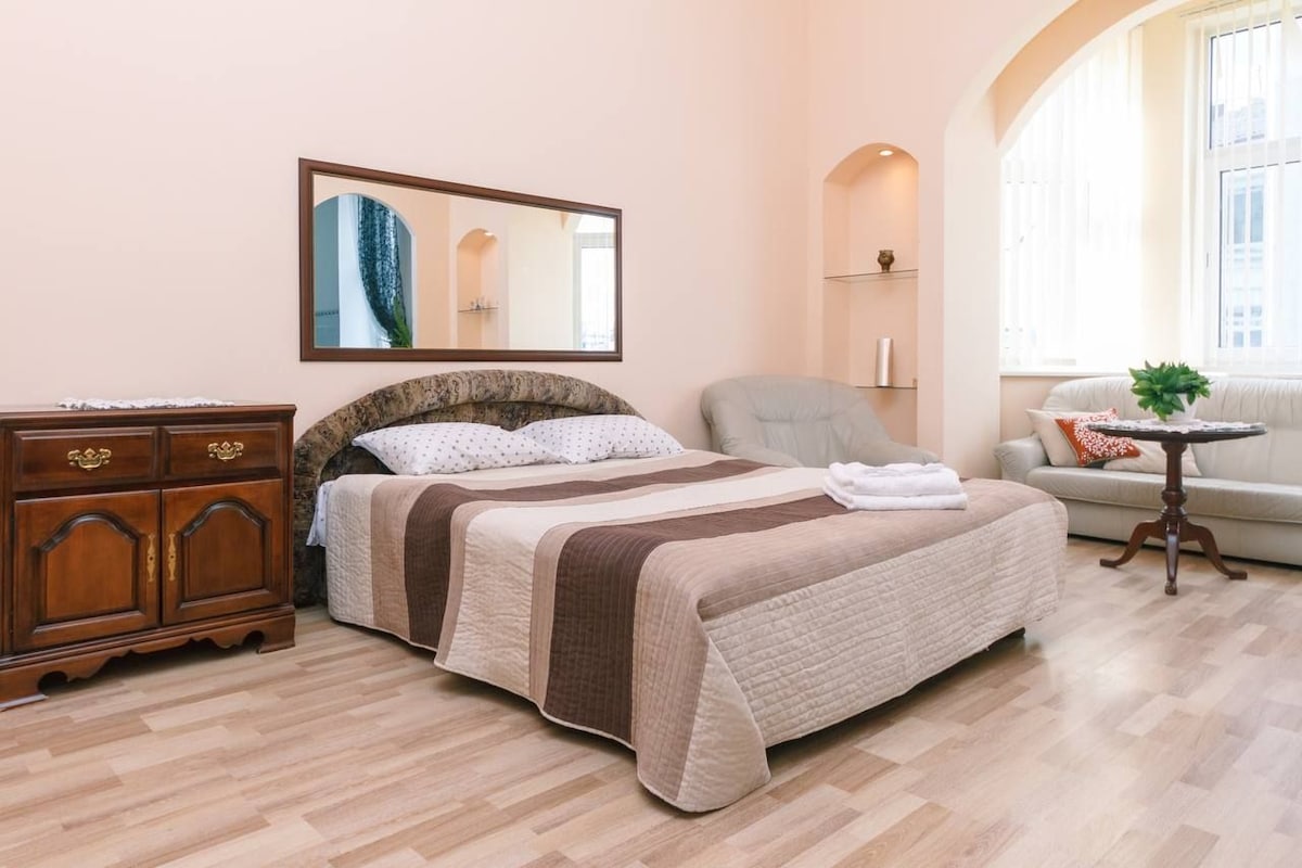 Modern two-bedroom apartment, located in the very center of the capital, just 15 meters from Independence Square. The apartment is completely at guests' disposal, a living room, two bedrooms, a kitchen and a bathroom. The apartment has everything you need for cooking, washing machine, TV, Wi-Fi, two balconies, one of them overlooking the Maidan.