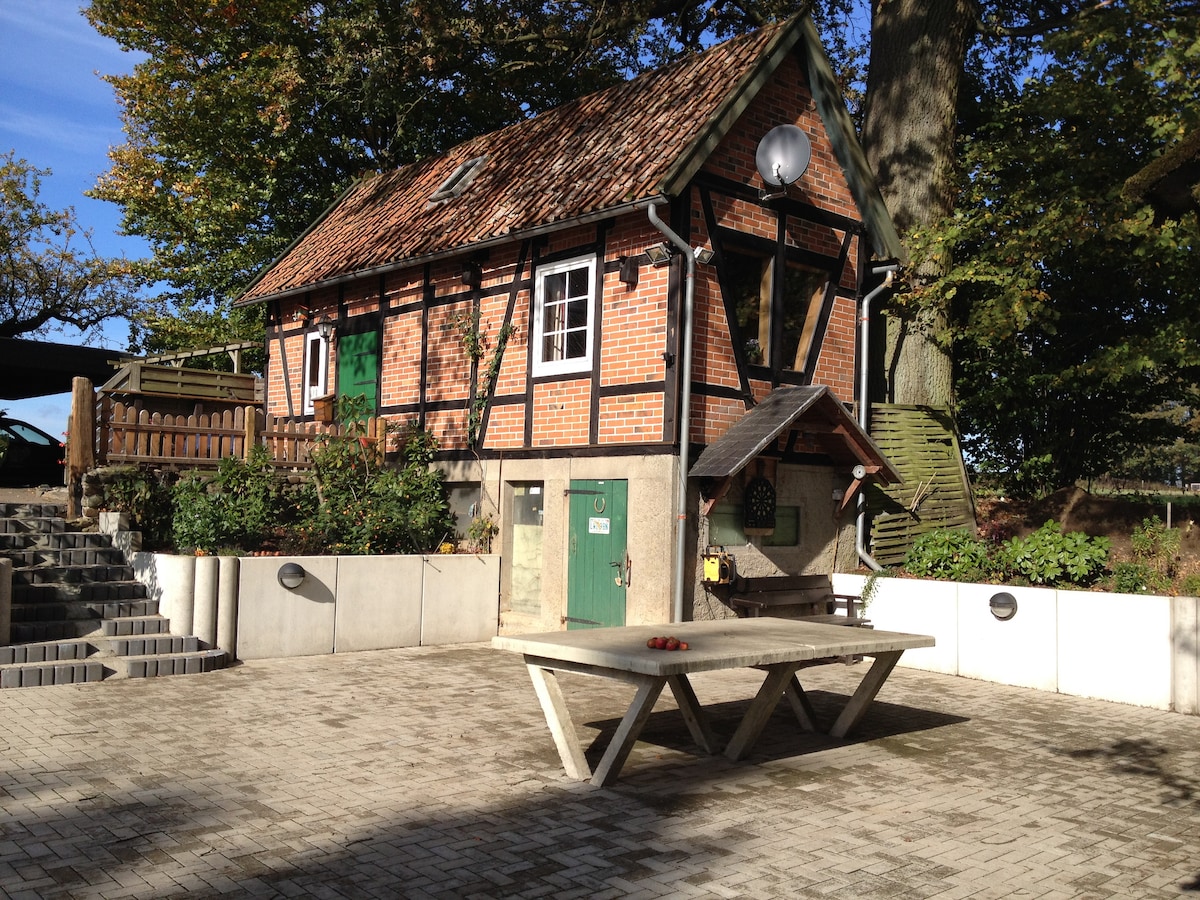 - जुन्या फार्महाऊसच्या तळमजल्यावर नुकतेच नूतनीकरण केलेले हॉलिडे अपार्टमेंट, - सोफा, डबल बेड असलेली बेडरूम, - आवश्यक असल्यास खाट, उंच खुर्ची उपलब्ध - प्रशस्त शॉवर असलेली बाथरूम - घरासमोर/ किंवा मोठ्या बागेत बसण्याची जागा, बार्बेक्यू आणि फायर बास्केट वापरली जाऊ शकते. - थेट फार्महाऊसमध्ये पार्किंगच्या जागा - विनंतीनुसार सायकली - वायफाय / टीव्ही - 40 मिनिटांत हॅनोव्हर, ब्रेमेन 60 मिनिटांत पोहोचू शकतात - चालण्याच्या अंतरावर असलेल्या जवळपासच्या बेकरीज आणि रेस्टॉरंट्स.