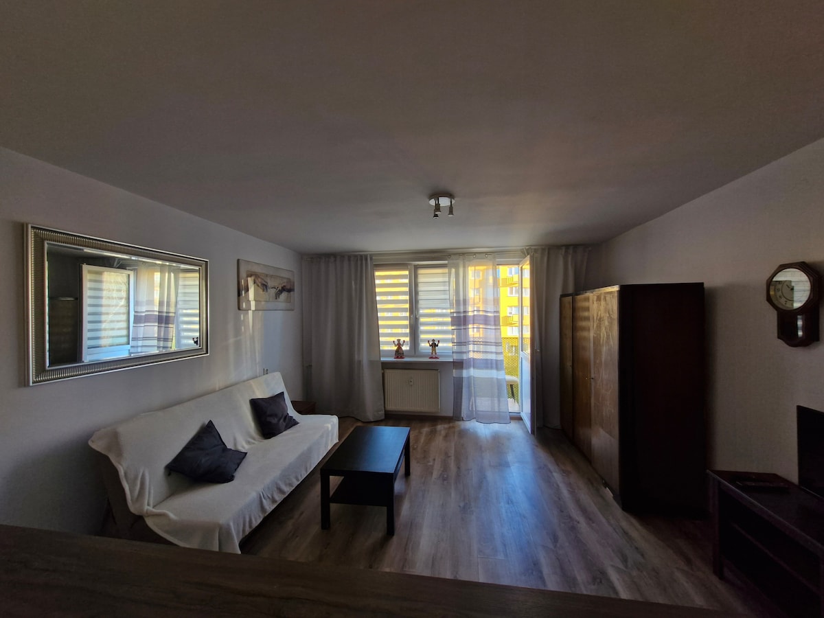खूप छान अपार्टमेंट. लिव्हिंग रूम, बेडरूम, बाथरूम आणि बाल्कनीसह एक किचन आहे. इमारतीच्या मागे एक लहान जंगल तसेच एक छान पार्क आहे. अपार्टमेंटपासून सुमारे 200 मीटर अंतरावर एक शॉपिंग मॉल आणि एक सिनेमा आहे. गेस्ट्सच्या वापरासाठी स्वतंत्र जागा असलेली अंडरग्रंग कार पार्क आहे. आरामदायक f गेस्टसाठी किचनमध्ये कॉफी, चहा, साखरे, मीठ, तेल, मसाले इत्यादी मूलभूत किचन कर्मचारी आहेत... रात्रीचे शांतता 22.00 -06.00 दरम्यान लागू होते, त्यामुळे पार्टीजसाठी ते पुरेसे नाही.