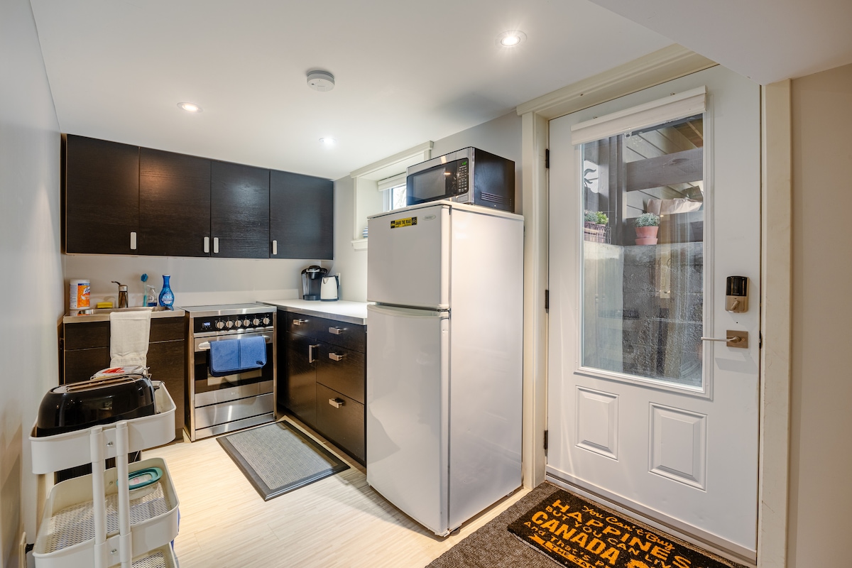 हा आरामदायक आणि शांत ग्राउंड-लेव्हल सुईट पूर्णपणे खाजगी आहे आणि रेस्टॉरंट्स, कॉफी शॉप्स आणि हायकिंग ट्रेल्सपर्यंत चार्मिंग डंडासमध्ये जलद चालतो. नुकतेच नूतनीकरण केलेले बाथरूम, एक ड्राईव्हवे पार्किंग स्पॉटसह किचनेट आणि विनामूल्य स्ट्रीट पार्किंग. मॅकमास्टर युनिव्हर्सिटी आणि रुग्णालयापर्यंत पाच मिनिटांच्या ड्राईव्हवर, अँकस्टर मिल, रॉयल बोटॅनिकल गार्डन्स आणि सायकलिंग ट्रेल्सजवळ.