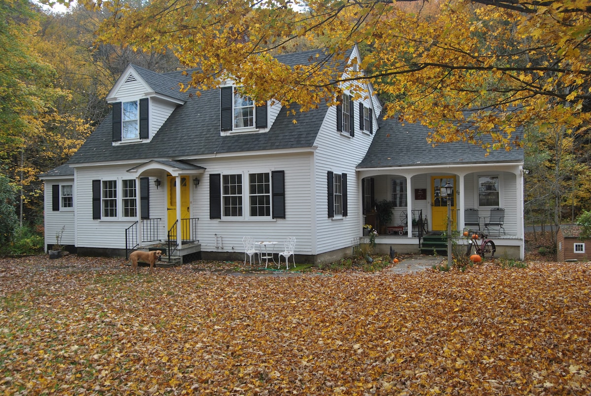 लक्झरी, सुसज्ज कॉटेज - वुडस्टॉक व्हीटी आणि हॅनोव्हर एनएच दरम्यान स्थित सुंदर सूर्योदय दृश्य. संगीतकारांच्या सुट्टीसाठी प्रेरणादायी मेजवानी म्हणजे पूर्णपणे पुनर्संचयित केलेले १९२९ स्टाइनवे पूर्ण स्वयंपाकघर, कस्टम कॅबिनेट, गॅस फायरप्लेस, ऊर्जा कार्यक्षम उष्णता पंप, वॉशर, ड्रायर.खूप आरामदायक क्वीन बेड. जंगलात रोमँटिक सुट्टी, आराम, शांततेत काम, परिसराचे सौंदर्य आणि इतिहास एक्सप्लोर करा. हायकिंग, बाइकिंग, फिशिंग, हॉट एअर बलून राईड्स आणि शॉपिंग सर्व जवळपास आहेत. दीर्घकालीन (90 दिवस) किंवा वीकेंडसाठी भाड्याने देणे