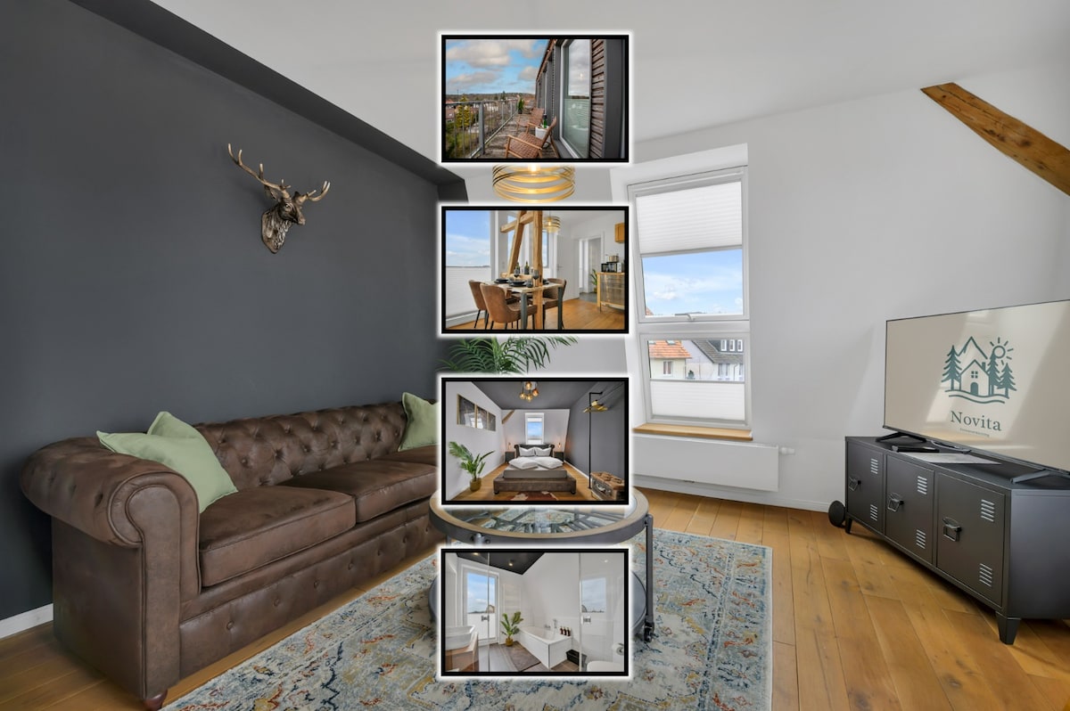 या अनोख्या जागेत स्टाईलिश अनुभवाचा आनंद घ्या. ही प्रॉपर्टी बाल्कनीसह वरच्या मजल्यावर आहे आणि मध्यभागी वर्निगरोडच्या ऐतिहासिक शहराच्या मध्यभागी आहे. वायफाय वापर, अंतिम स्वच्छता, बेड लिनन, बाथ टॉवेल्स आणि सॉना वापर समाविष्ट आहेत.