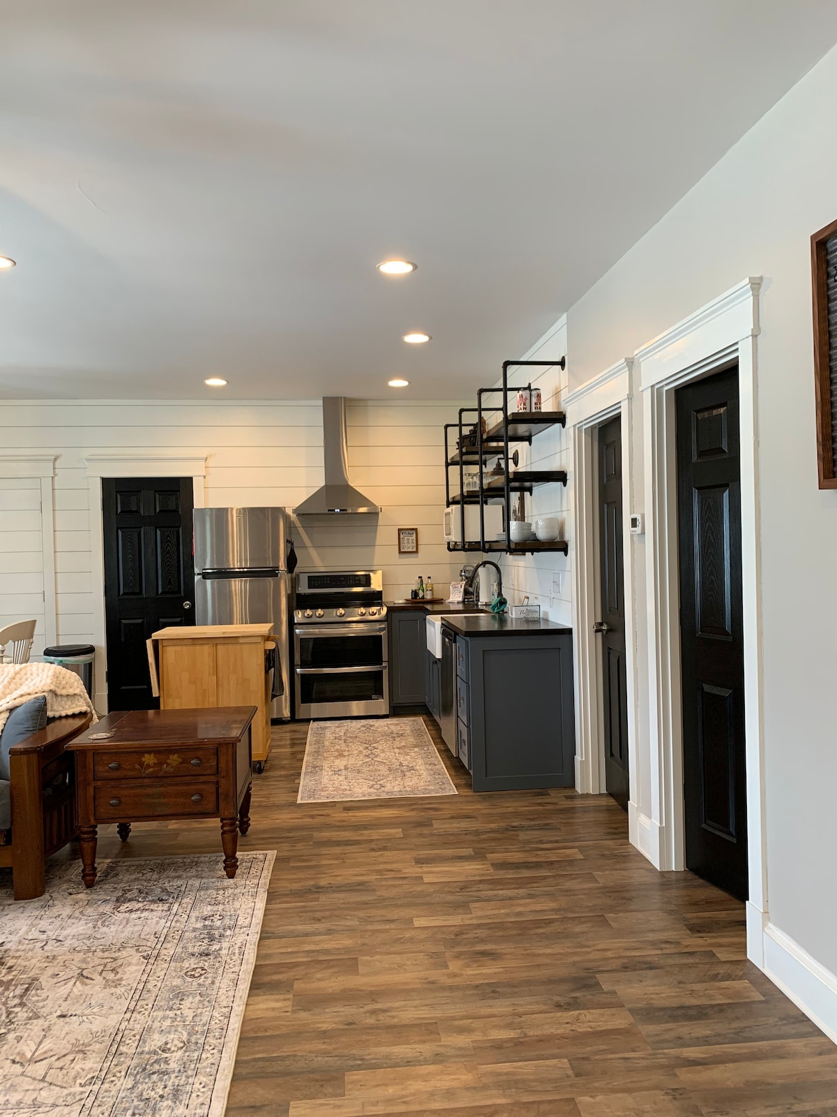 परत या आणि या शांत, स्टाईलिश जागेत आराम करा. डीप क्रीक लेकपासून फक्त 5 मैलांच्या अंतरावर असलेल्या स्वतंत्र गॅरेजच्या वर अगदी नवीन, सुंदर एक बेडरूमचे अपार्टमेंट. कारागीर गुणवत्ता असलेले मोठे किचन, किंग साईझ निओ - इंडस्ट्रियल अक्रोड बेड, लाईव्ह - एज व्हॅनिटी आणि वॉल कॅप, आर्टिक्युलेटिंग लॅम्प, स्थानिक कारागीराने बनवलेली सुंदर डिझाईन केलेली जागा. क्वीन बेडसह लेदर पुल आऊट सोफा दोन अतिरिक्त गेस्ट्सना झोपवतो. फायर पिटजवळ आराम करा आणि जंगलातील पक्ष्यांचे म्हणणे ऐका.