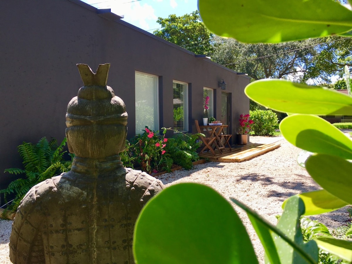 स्वतंत्र प्रवेशद्वार आणि बागेच्या दृश्यांसह खाजगी आणि शांत स्टुडिओ. मुख्य घरापासून वेगळे असलेले हे घर आरामदायक, शांत आणि सर्व आवश्यक सुविधांनी सुसज्ज आहे. मायामी एक्सप्लोर करण्यासाठी परफेक्ट बेस—साऊथ बीच, विनवूड आणि डाऊनटाऊन फक्त 15 मिनिटांच्या अंतरावर. जवळपास उत्तम स्थानिक रेस्टॉरंट्स असलेल्या सुरक्षित, मैत्रीपूर्ण परिसरात स्थित आहे. आराम करण्यासाठी आणि रिचार्ज करण्यासाठी एक आरामदायक, सोयीस्कर रिट्रीट.