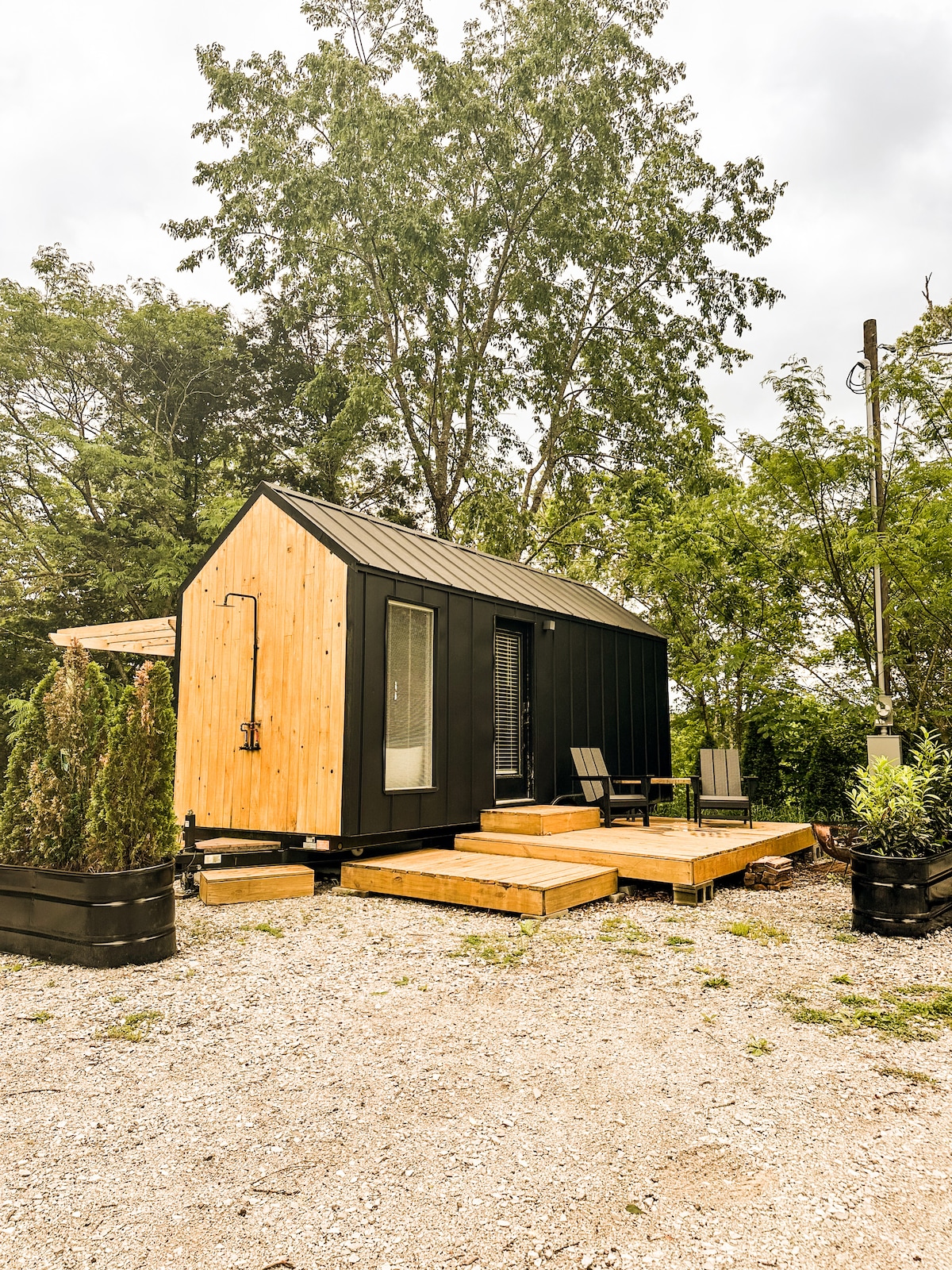 आरामदायक नॉर्डिक लहान घर + जुळ्या धबधब्यांद्वारे सॉना