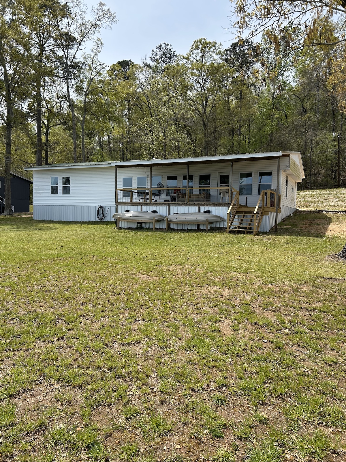 Take it easy at this tranquil getaway on the water. The 2 bdrm/ 2 ba cottage has a dock & boat launch allowing you to enjoy nature & fishing along the Alabama River within minutes. A queen air mattress adds to the sleeping capability. The expansive outdoor area includes comfortable seating, a large screen TV, dining table, porch & rockers. It is the perfect spot to enjoy the sunrise/sunsets or the big game. The fire pit will keep you warm on a cool winter night. Min. stay - two nights.