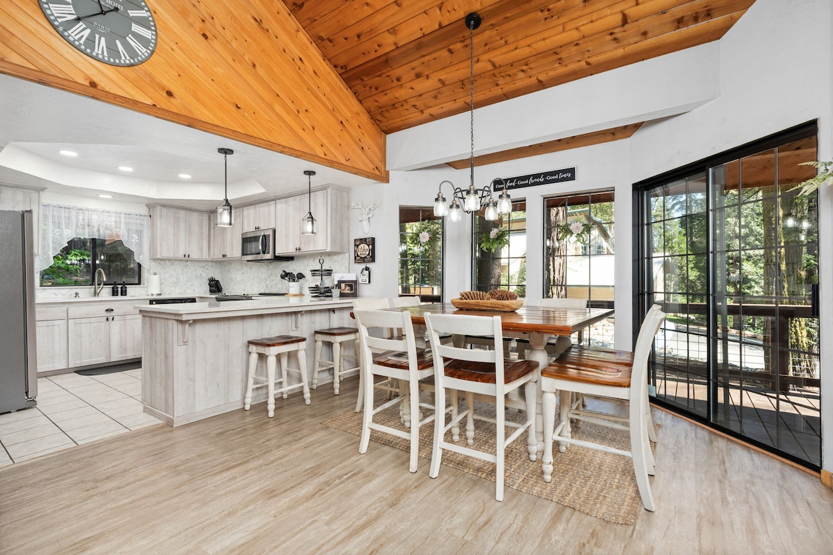 हे 3250 चौरस फूट घर, फ्लॅट - स्क्रीन टीव्ही आणि वायफायसह कॅम्पिंग करण्यासारखे आहे. आऊटडोअर आणि चित्तवेधक माऊंटन व्ह्यूजचा आनंद घ्या आणि सिएरासचे अनंत दृश्ये आणि एक आरामदायक आणि समकालीन इंटिरियर असलेल्या डेकसह मोठ्या माऊंटन घरात आराम करण्यासाठी परत या. हे घर खाजगीरित्या कूल - डे - सॅकवर आहे आणि फक्त काही इतर घरे आहेत. हे हायकिंग ट्रेल्स, मासेमारी तलाव आणि नद्यांनी वेढलेले आहे आणि ते कार्डिनल व्हिलेज रिसॉर्टपासून फक्त 15 मिनिटांच्या अंतरावर आहे.