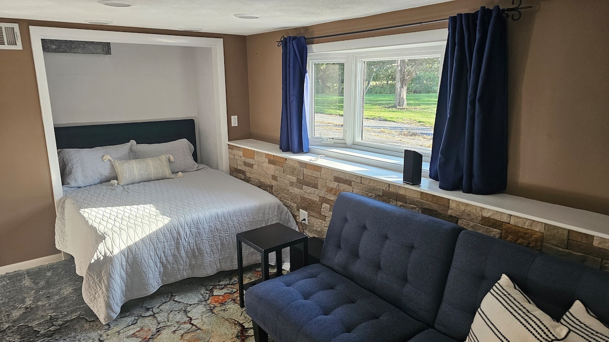 नूतनीकरण केलेल्या डेअरी कॉटेजमध्ये कला + प्रशस्त वास्तव्य