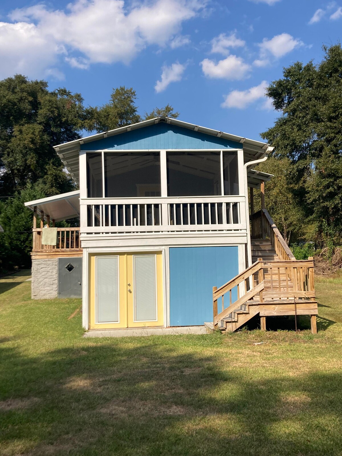 Southern Comfort & Charm on Lake Blackshear with a large walk out porch and gorgeous view, outdoor seating with swings, rockers and large couches. Enjoy a book, fire pit or out door TV for a ballgame with surround sound outside and inside! Perfect weekend getaway, great for work & traveling. Winter rentals available to escape the cold. Great for small family gatherings, girls weekends, or couples. Book a weekend, week or a month. Pets considered, but MUST be approved with $100 p/pet.