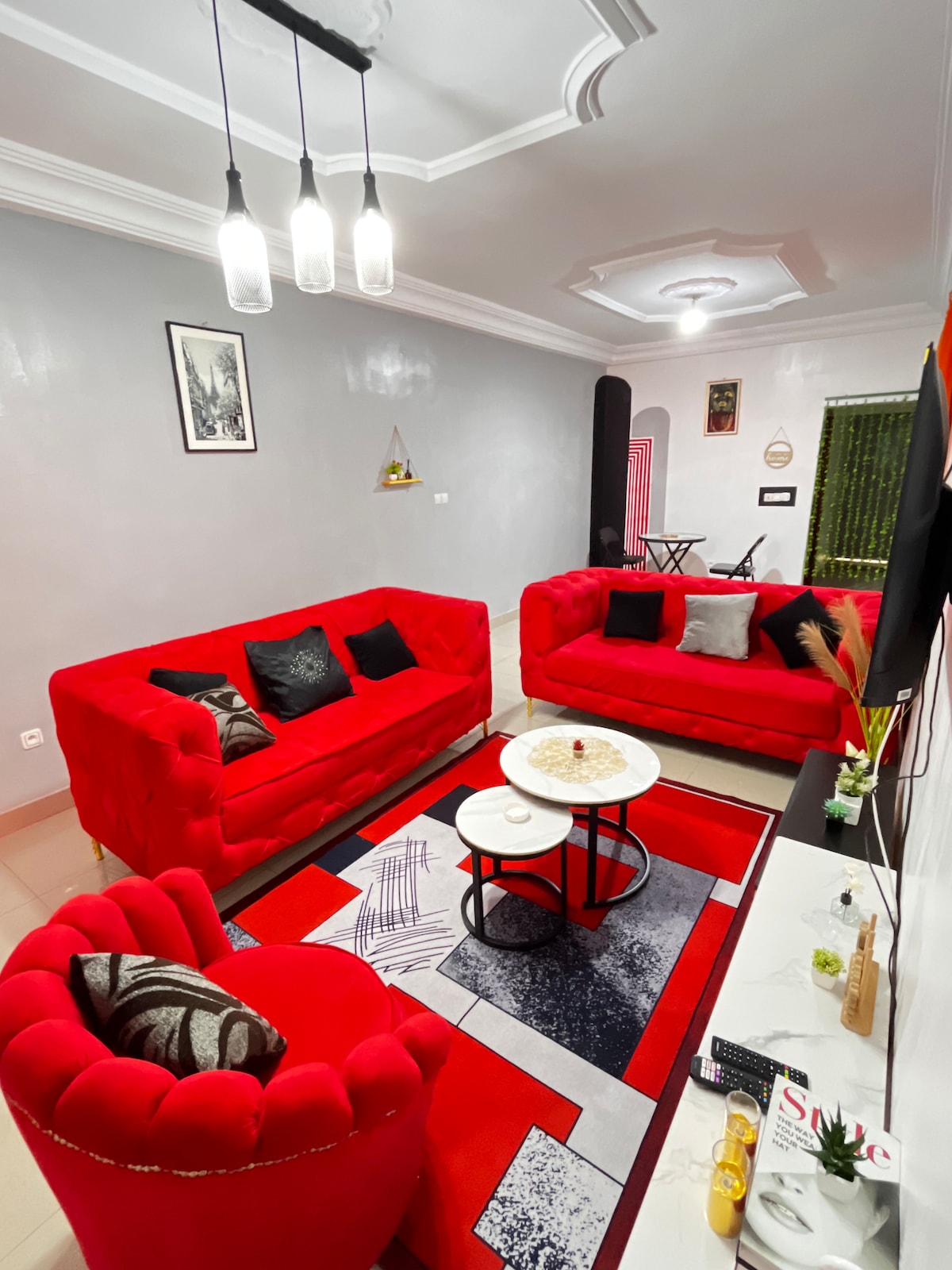 Amusez-vous avec toute la famille dans ce logement très chic. - 3 chambres autonomes avec climatisation et TV connectée 43" - 1 grand salon avec TV connectée 55" et 1 salle à manger, avec climatisatisation - 1 salon secondaire en haut avec TV connectée 43" et accès à un grand balcon (pour vos apéros et soirées en plein air) - Cuisine entièrement équipée - Accès internet FTTH 200Mb/s - Groupe électrogène - Citerne d'eau 1m³ avec suppreseur