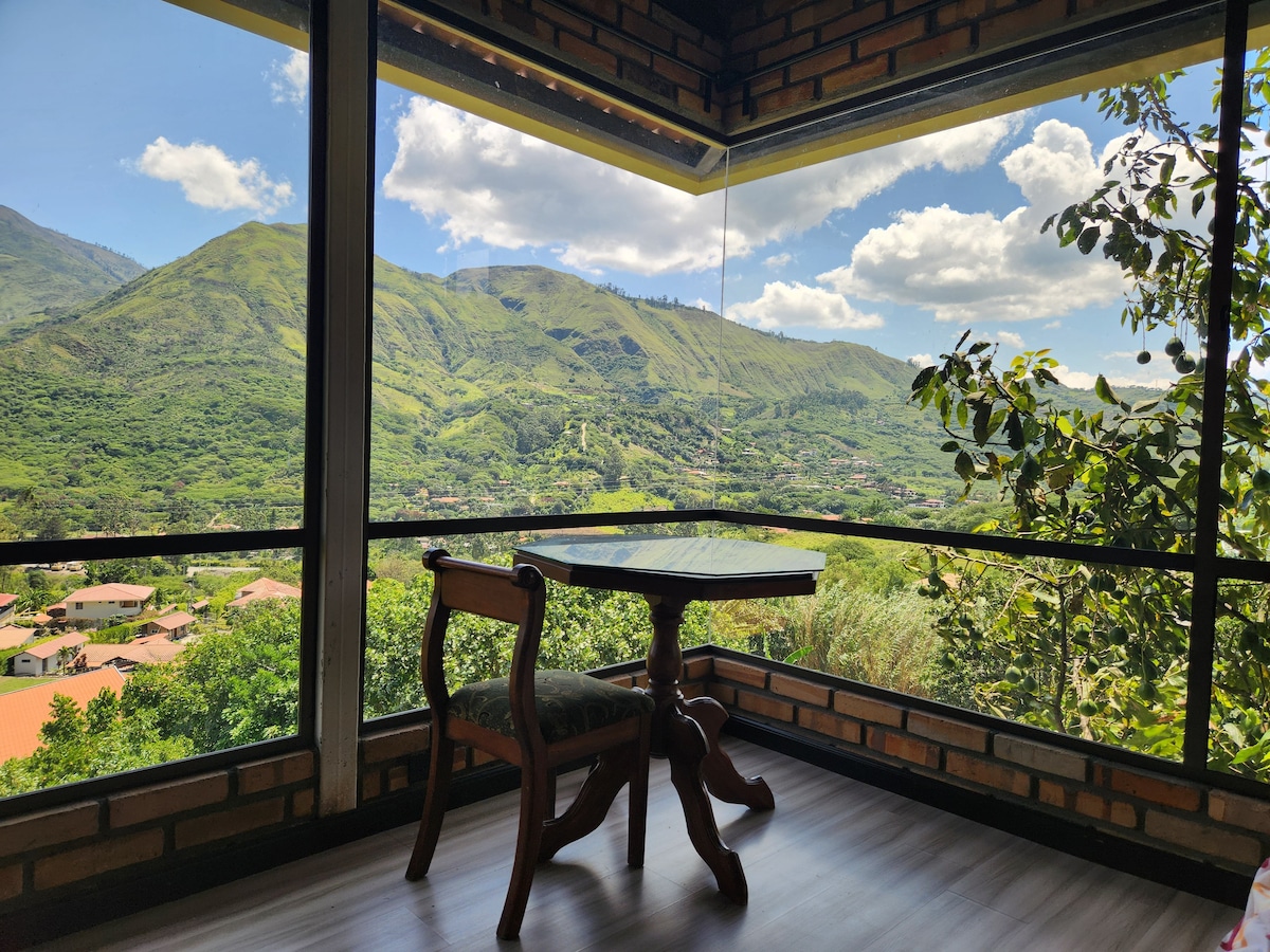 Caba├▒a mixta de madera y adobe, ideal para 4 personas, ubicada a 1 km del centro de Vilcabamba, en una zona alta con vista privilegiada al Valle de la Longevidad y monta├▒as circundantes. Cuenta con dos habitaciones y lo necesario para una estad├нa confortable, la sala y comedor est├бn en su portal. Su dise├▒o r├║stico se integra con el entorno, ofreciendo un ambiente tranquilo, rodeado de naturaleza, perfecto para descansar, desconectarse y disfrutar del aire puro y el paisaje ├║nico de Vilcabamba.