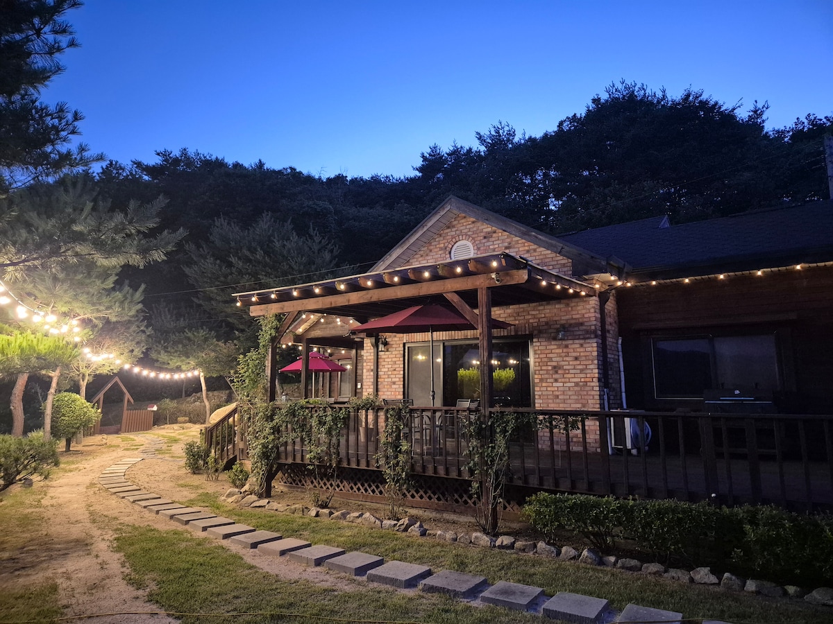 हे 200 - प्योंग यार्ड असलेले पेंशन आहे आणि ते सुमारे 40 प्योंगचे खाजगी घर आहे. कोळसा बार्बेक्यू सुविधा उपलब्ध आहेत. छोट्या गार्डनमध्ये एक झोके देखील आहे. प्योंगगँगलँडपासून 5 मिनिटांच्या अंतरावर आहे आणि संजोंग लेक 10 मिनिटांच्या अंतरावर आहे. तुम्ही 20 -30 मिनिटांत हंटन नदीवर राफ्टिंगचा आनंद घेऊ शकता.(सवलत 36,000 KRW -> 30000 KRW (पेंशनमधील प्रीपेमेंटची स्थिती) आम्ही तुम्हाला सादर करू. बेगन व्हॅलीपासून 15 मिनिटांच्या अंतरावर आहे. * तुम्हाला बार्बेक्यू, उपकंपनी साहित्य हवे असल्यास (कोळसा.इग्निशन एजंट्स, इ.) अतिरिक्त खर्च आणि मोबाईल फासे मागवले जाऊ शकतात. * आमचे निवासस्थान वापरताना तुम्ही तुमचे पेंशन नाव आणल्यास, प्योंगगँग लँड तिकिटाच्या भाड्यावर प्रति व्यक्ती 7,000 वॉनवर सवलत दिली जाईल. * मूलभूत लोकांची संख्या 4 पेक्षा जास्त असल्यास, प्रति व्यक्ती 20.000 चे अतिरिक्त शुल्क जिंकले < 2 पर्यंत कुत्र्यांना परवानगी आहे आणि कृपया बुकिंगपूर्वी होस्टला सांगा.