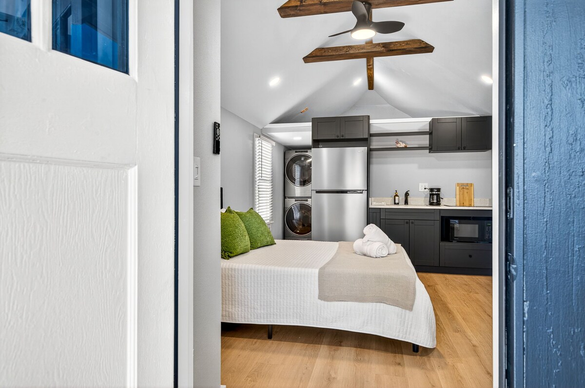 फाउंडेशनवरील 2020 च्या छोट्या घराचा अनुभव घ्या • लॉटवरील तीन लहान घरांपैकी एक! • 360 SF / 1 लेव्हल • साप्ताहिक आणि मासिक सवलती • खाजगी फ्रंट पोर्च • सुंदर झेफायर पार्कच्या पायऱ्या • 6 मिनिटे. ऐतिहासिक डाउनटाउन मेन स्ट्रीटवर चालत जा • स्टॉक केलेले + सुसज्ज किचन • मोहक निवासी आसपासचा परिसर • विशेष FL लहान होम बिल्डरद्वारे बांधलेले • वॉशर/ड्रायर • FiOS वायफाय 500 Mbps • ऑनसाईट खाजगी पार्किंग • पार्किंग पॅडपासून समोरच्या पायऱ्यांपर्यंत नवीन पदपथ