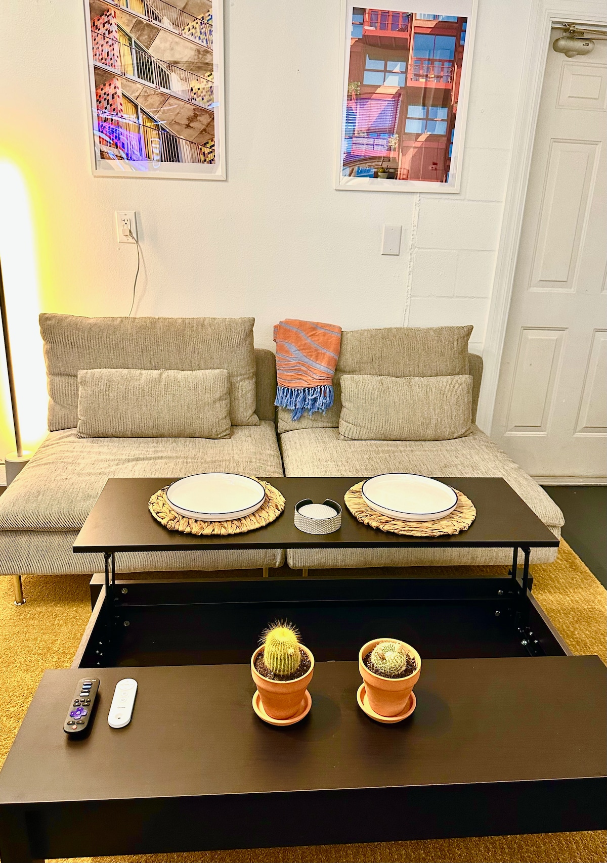 रेन शॉवर, इन - युनिट वॉशर/ड्रायर (डिटर्जंट समाविष्ट), स्मार्ट टीव्ही वाई/ रोकू आणि नेटफ्लिक्स आणि कॉफी, शर्करा आणि क्रीमरसह स्टॉक केलेला कॉफी बार असलेला खाजगी स्टुडिओ. मिनी किचनमध्ये मायक्रोवेव्ह, फ्रिज, डिशेस, भांडी आणि सीझनिंग्जचा समावेश आहे. क्वीन बेड, आरामदायक सोफा, थंड A/C आणि जलद वायफाय. शांत, सुरक्षित आसपासच्या परिसरात खाजगी प्रवेशद्वार. रिमोट वर्क, दीर्घकाळ वास्तव्य किंवा शॉर्ट गेटअवेजसाठी आदर्श. स्वच्छ, फंक्शनल आणि सेटल करणे सोपे आहे. भरपूर पार्किंग.