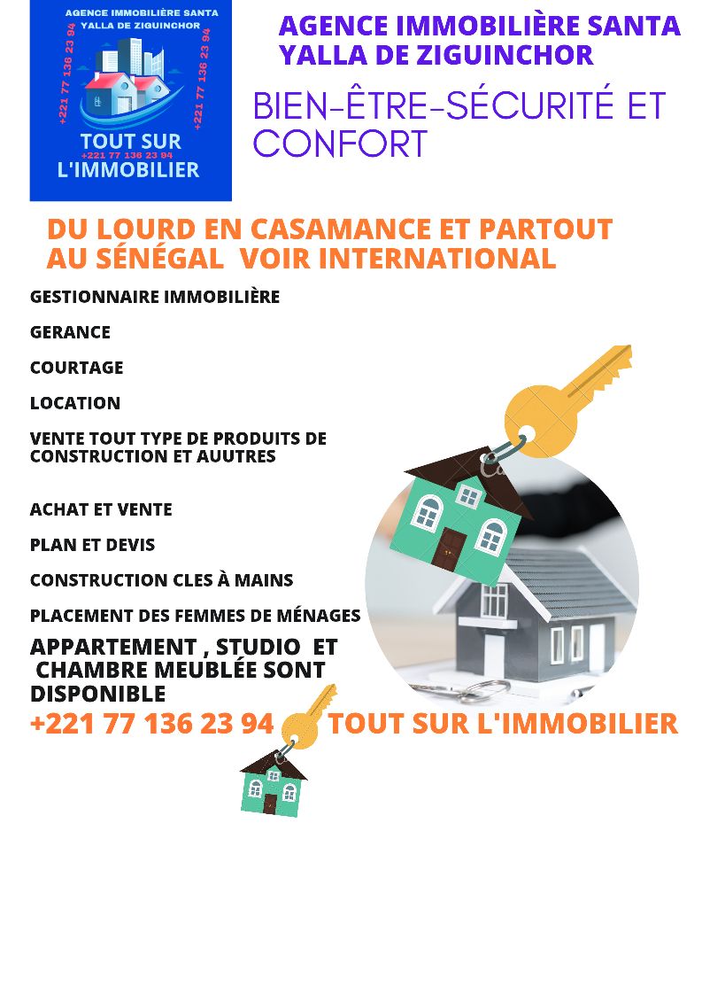 Appartement de 08 chambres + 04 salons+04 cuisines + 08toilettes lot de 1000m² avec une maison construite de 04 chambres + 02 salons + 02 cuisines + 02 toilettes et un grand forage des terrains en vente partout à Ziguinchor et ailleurs, Bignona,mbour saly, Dakar,Saint Louis,kolda,kaolack, tout sur l'immobilier avec la gestion immobilière complète dans le monde entier. plus de soucis de vos biens et services veuillez nous retrouver à korintas et Lyndiane