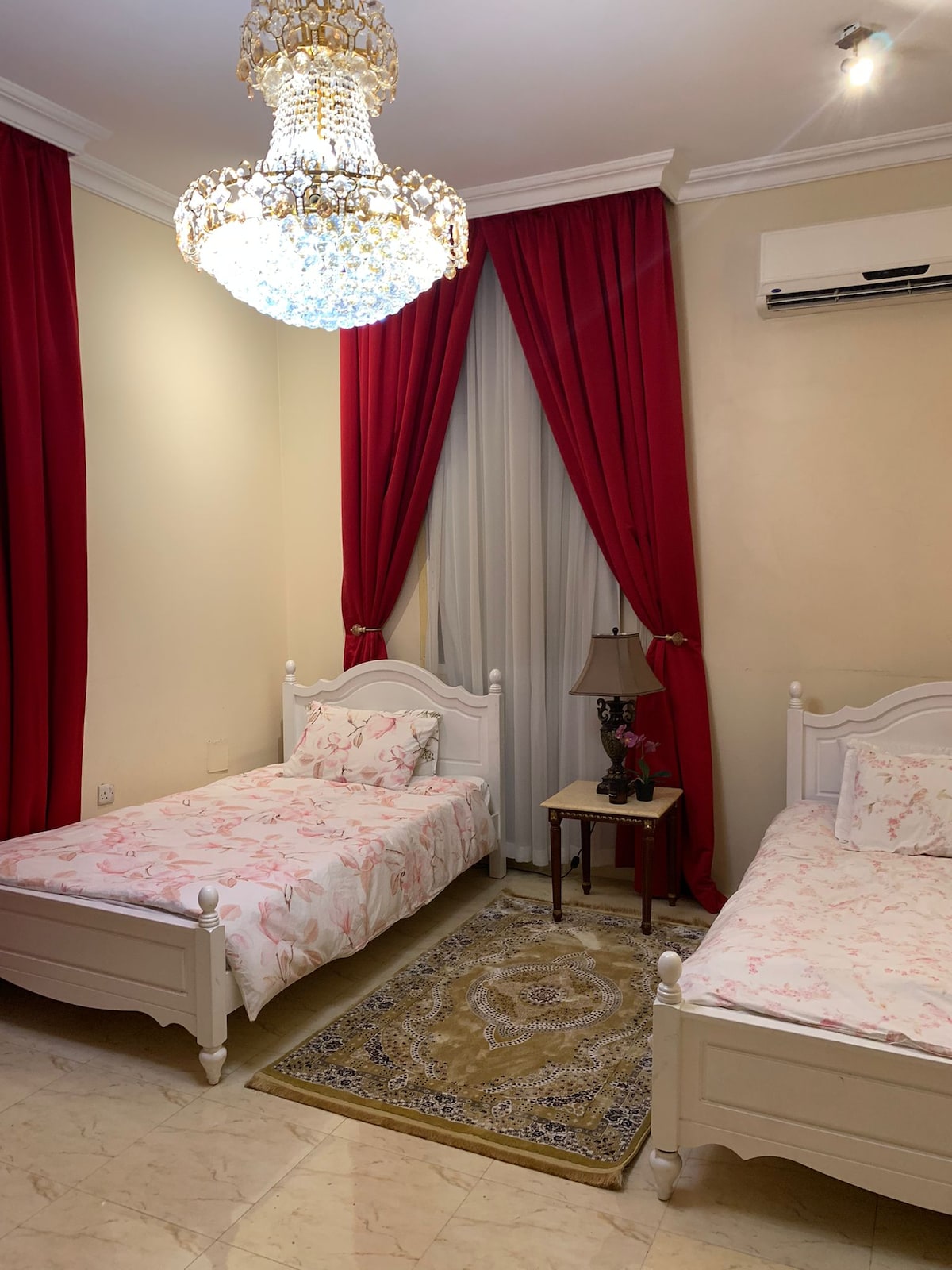 व्हिलामध्ये तीन मजली आहेत. रूम पहिल्या मजल्यावर आहे. यात डबल बेड, वॉर्डरोब, कन्सोल, टीव्ही, खाजगी बाथरूम, एअर कंडिशनिंग आणि वायफाय इंटरनेट आहे. रूममध्ये लॉक असलेला खाजगी दरवाजा आहे. टीव्ही बसण्यासाठी आणि पाहण्यासाठी शेअर केलेल्या जागा आहेत आणि त्याच मजल्यावर आणि तळमजल्यावर एक शेअर केलेले किचन आहे. AlJanoub आणि AlThumama स्टेडियमजवळील व्हिला, लुसेल स्टेडियमपासून 25 मिनिटांच्या अंतरावर , लुलू हायपरमार्केटपर्यंत आणि अनेक दुकाने, मेट्रो आणि बस स्थानकांच्या आसपास.